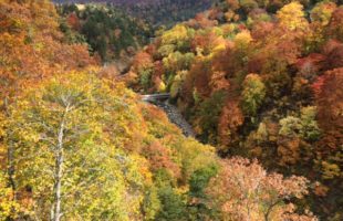 秋田県の全国に名の知れた玉川温泉の紅葉です。 山のてっぺんは色が落…