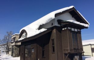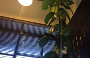 沢山の雪が降り積もる中、事務所内の唯一の緑『ゴムの木』が温かみを感じさせ…